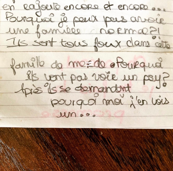 Il faut dire que dans ma famille, à peu près tout le monde voit des psys, et le sujet n’est pas tabou. Dépressifs, alcooliques, schizophrènes, paranoïaques, anorexiques, ou simples névrosé.es, nous sommes particulièrement bien lotis à ce niveau-là. On aime beaucoup en rire, c’est déjà ça.